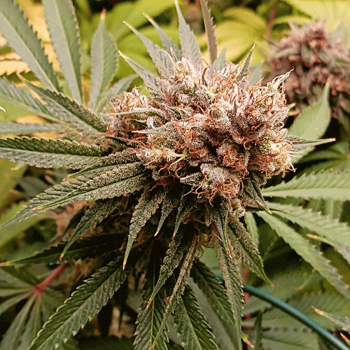 This hybrid grows short and bushy, reaching approximately 3.94 ft (1.2 m), with thick branches and minimal stretch—ideal for compact indoor spaces or discreet outdoor cultivation. Buds develop rock-solid and resin-rich, making them perfect for hash or concentrates.