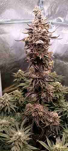 Afghan × Black Domina Auto Feminised Seeds grow into squat, sturdy plants with lateral branching and a robust Indica structure. Reaching heights around 3.28–4.92 ft (1–1.5 m), they produce dense, resinous flowers accented by deep green leaves and vibrant orange pistils. Their compact form makes them perfect for stealth gardens and space-limited grows.
