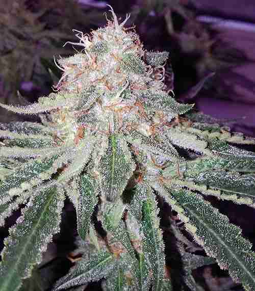 Indoor yields of 500–600 g/m²; outdoor plants can exceed 650 g each. Finishes flowering in 8–9 weeks, harvest-ready by late September to early October.