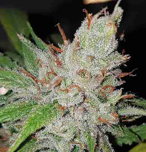 Amnesia Hypro grows with an elongated sativa structure featuring vigorous vertical development and long internodes, reaching approximately 4.92 ft (1.5 m). Buds form dense, crystal-coated colas with vibrant green calyxes and bright orange pistils, resulting in exceptional bag appeal and resin production.