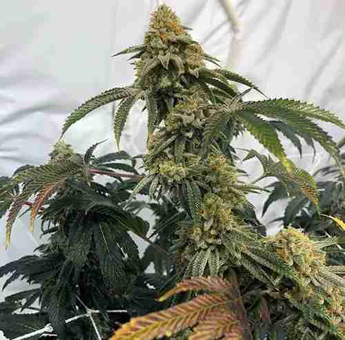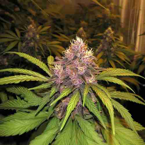 Birthday Cake Feminized develops into symmetrical, compact plants featuring broad indica leaves and dense branching, perfect for indoor cultivation. As flowering progresses, the buds transform into tight, resinous nuggets showcasing purplish hues and a sparkling trichome coating, creating an eye-catching display worthy of its name.