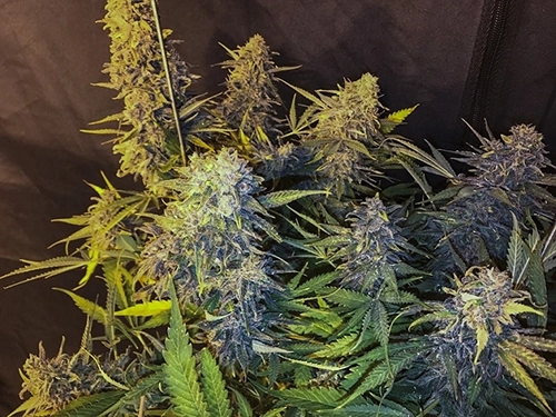 C99 x Blueberry Fast Feminized plants display a sturdy, compact structure with medium height—ideal for both indoor tents and outdoor gardens. Dense, resin-rich buds form along robust branches, showcasing vibrant green foliage that often develops bluish hints in cooler conditions. This vigorous strain maintains uniform growth, making canopy management easy and rewarding.
