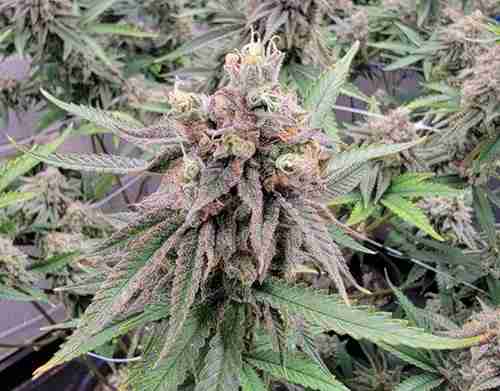 Critical Sunset Auto Feminised Seeds grow into compact, bushy plants with thick lateral branches supporting golf-ball-sized buds. Plants typically reach heights of 3.9–4.9 ft (1.2–1.5 m), making them easy to manage in confined spaces while still delivering generous yields. Expect frosty colas, vibrant orange pistils, and a strong central stem ideal for Sea of Green setups.