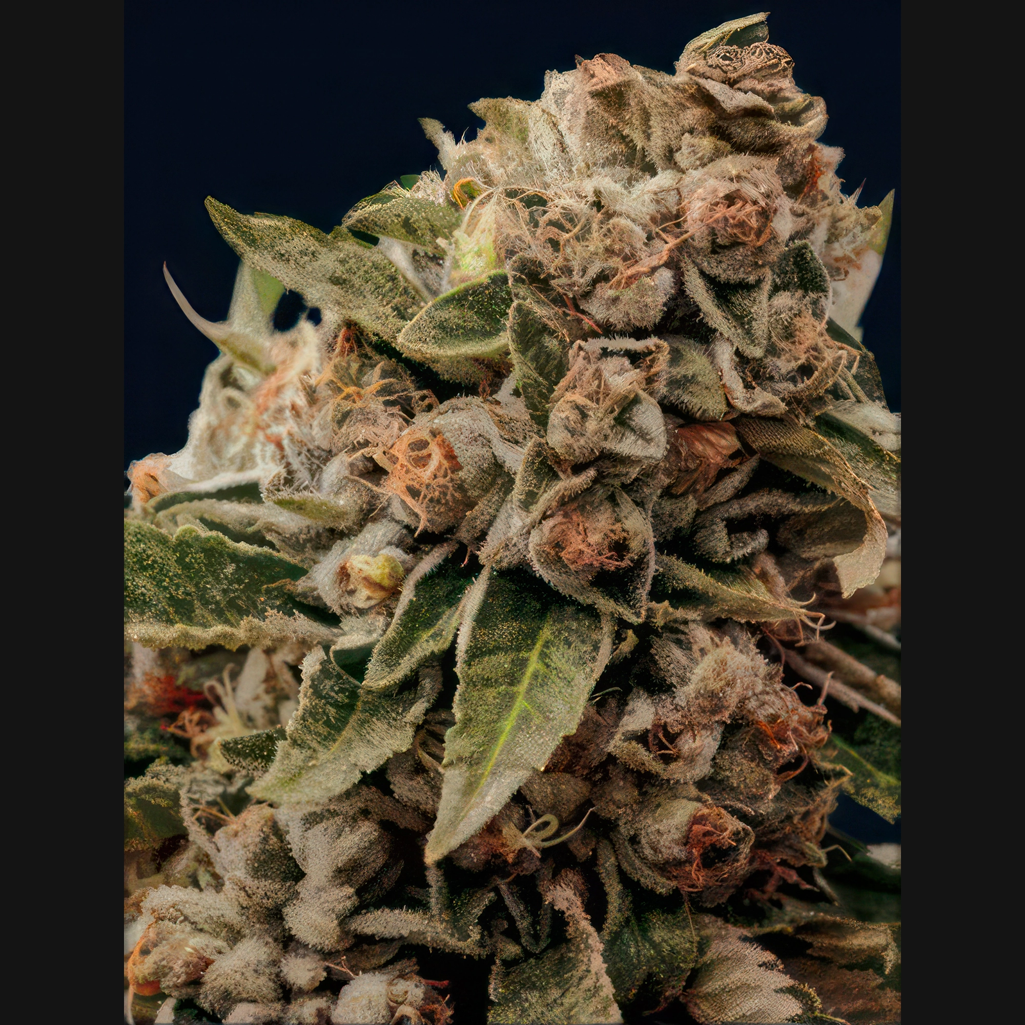 This hybrid grows with authority, producing tall, upright plants that can reach between 60 to 80 inches in optimal outdoor conditions. Indoors, it remains manageable while delivering abundant lateral branching and a dense canopy. Expect large, tightly packed colas covered in trichomes, with foliage that reveals deep green hues and occasional purple accents near maturity. Its structure is ideal for SCROG setups or low-stress training to optimize space and light penetration.