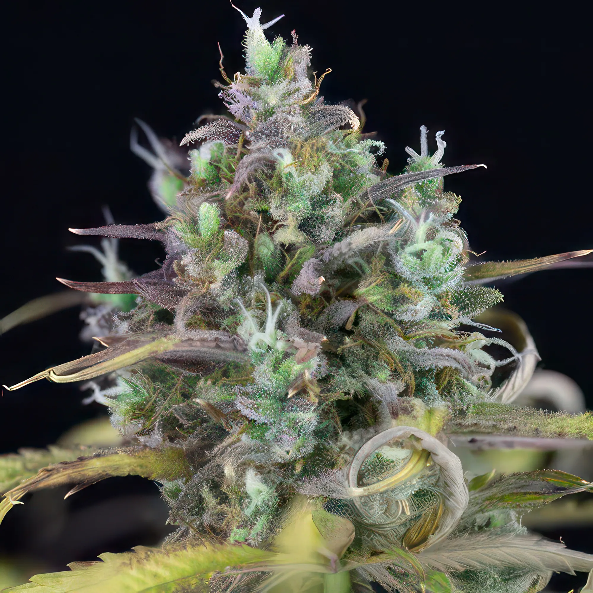 Zkittlez Feminized grows into bushy, medium-height plants ideal for indoor or outdoor cultivation. Featuring broad, dark green leaves and dense, trichome-coated buds, its colorful hues—ranging from deep green to purple—make it a true showstopper. Resilient and adaptable, Zkittlez excels in various environments, boasting strong resistance to common pests and mold.