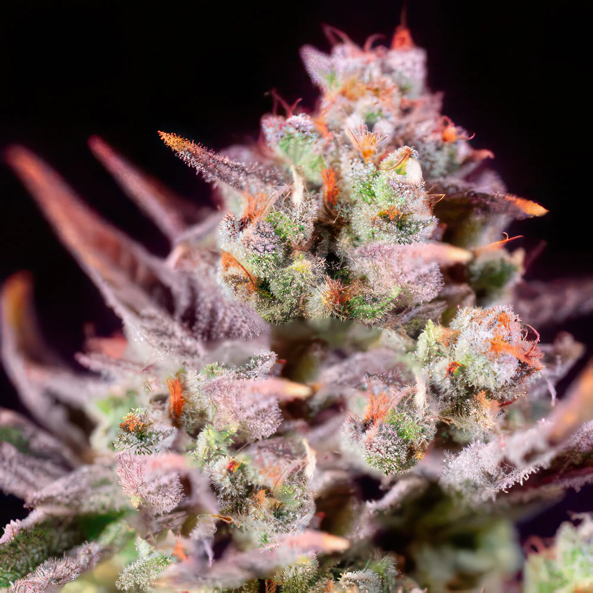 Zkittlez x Tangie Power grows as a vigorous plant, boasting dense, resin-coated buds that are a treat to observe. Its structure is characterized by robust branches that provide excellent support to its heavy flowers. The plant showcases a striking palette of rich green hues complemented by deep purple accents as it matures, making it a visually appealing addition to any garden.